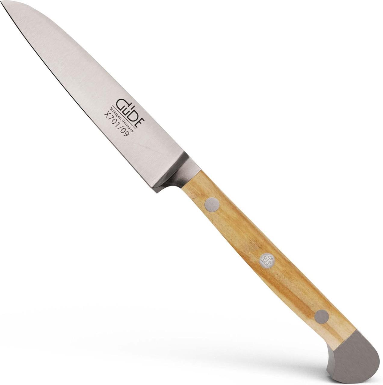 Das Güde Alpha Olive Gemüsemesser vereint traditionelle Solinger Schmiedekunst mit modernem Design und wird in bis zu 55 manuellen Arbeitsschritten von Hand gefertigt. Mit seiner kompakten Klingenlänge und dem ergonomischen Olivenholzgriff liegt es perfekt in der Hand und ermöglicht präzises Schälen, Putzen und filigranes Schneiden von Gemüse aller Art. Die hochwertige Stahlklinge überzeugt durch außergewöhnliche Schärfe und langanhaltende Schneidleistung, während der natürliche Olivenholzgriff für optimalen Halt und angenehmes Arbeiten sorgt. Ob beim Schälen von Kartoffeln, Schneiden von Zwiebeln oder der Vorbereitung von Kräutern – dieses handgefertigte Präzisionswerkzeug macht jede Küchenarbeit zum Vergnügen. Erleben Sie die Perfektion echter Solinger Messermachertradition und investieren Sie in ein Küchenmesser, das Sie ein Leben lang begleitet.