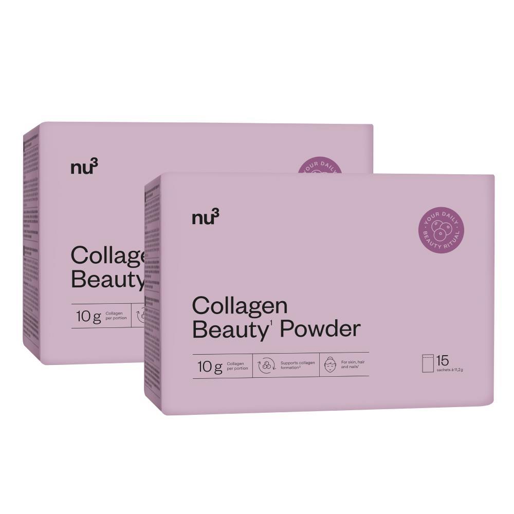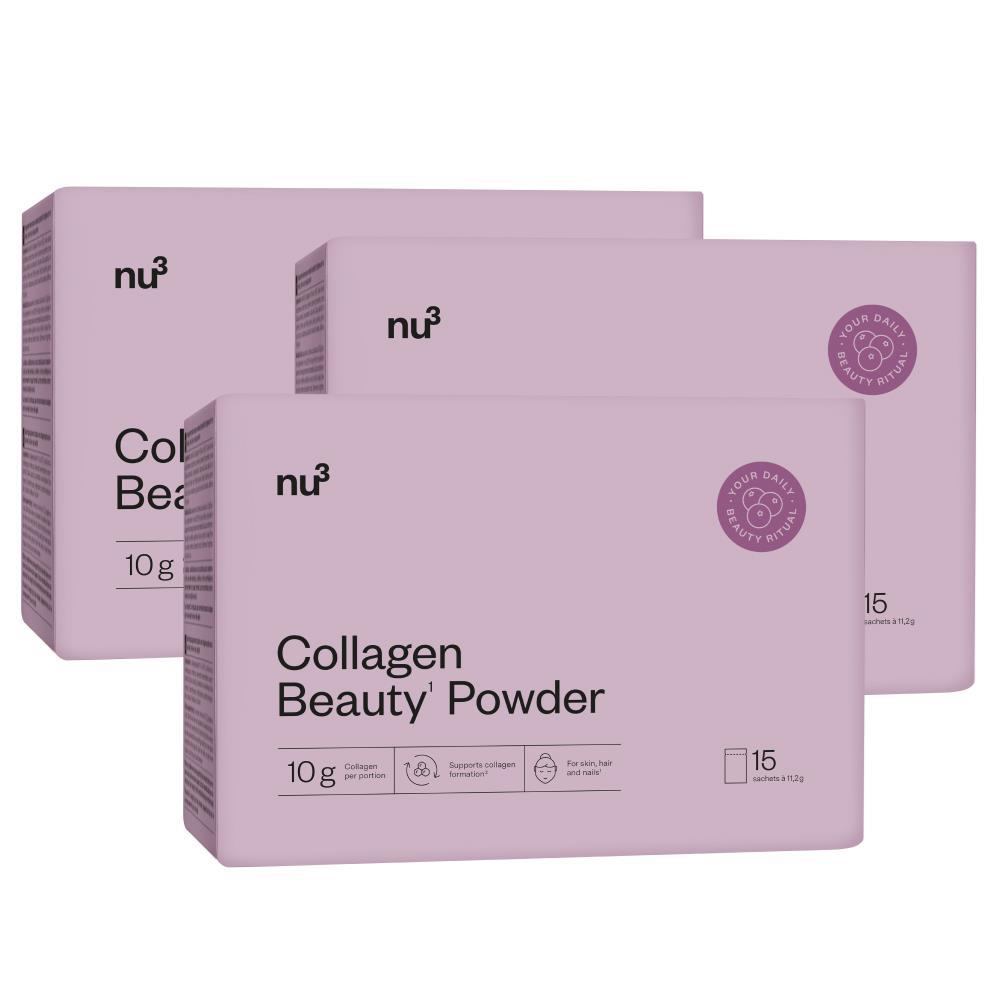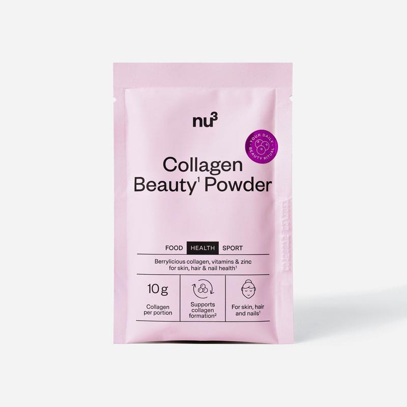 Eine schöne Routine von innen – mit dem nu3 Collagen Beauty Powder. Jede Portion liefert dir zehn Gramm hochwertiges Kollagen in Kombination mit wichtigen Mikronährstoffen wie Vitamin C, Zink, Biotin und Riboflavin. Die enthaltenen Nährstoffe leisten wissenschaftlich bestätigte Beiträge zur Erhaltung normaler Haut, Haare und Nägel¹ und Vitamin C trägt zu einer normalen Kollagenbildung² bei. Das Beauty-Pulver überzeugt durch seinen beerig-fruchtigen Geschmack und lässt sich vielseitig genießen – ob in Wasser, Joghurt oder im Smoothie.