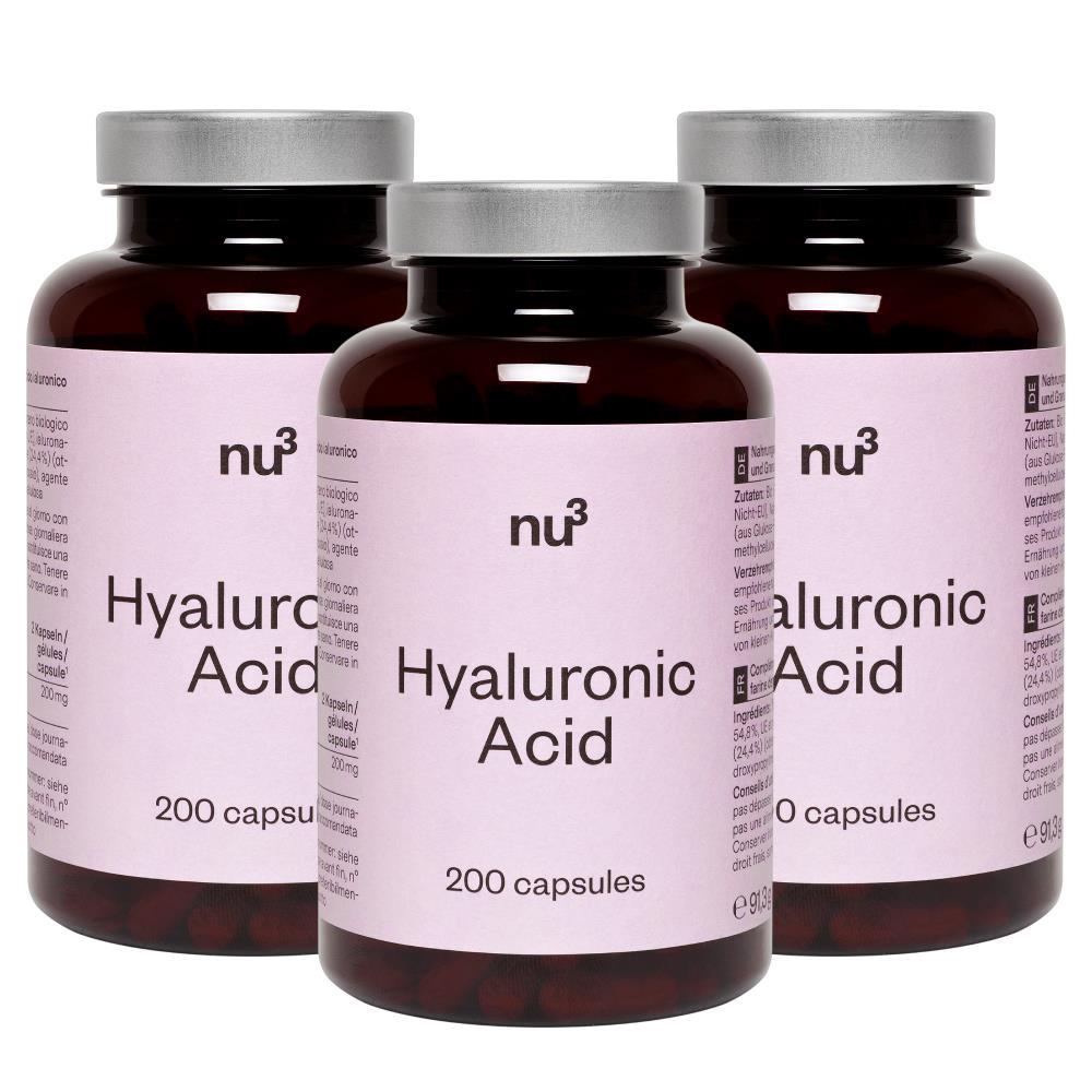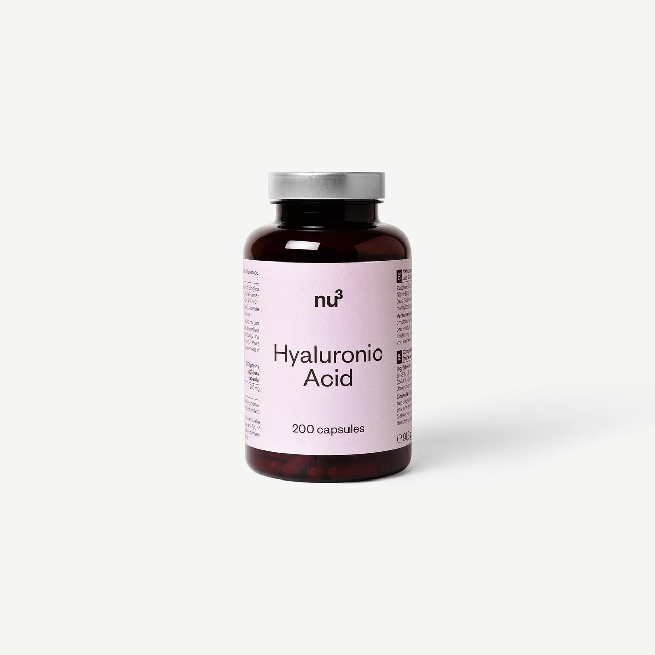 Die nu3 Hyaluronsäure Kapseln versorgen dich nicht nur mit 100 Milligramm bester Hyaluronsäure pro Kapsel, sondern sind auch mit feinem Hagebuttenschalenpulver kombiniert.
